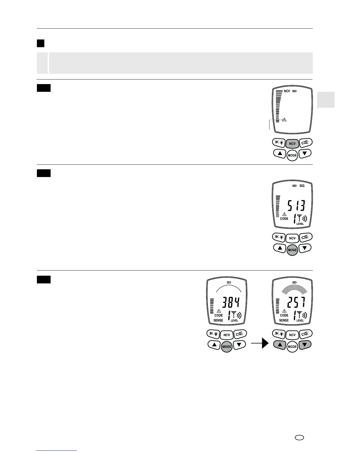 vises „NCV“. Her kan man søge efter spændingsførende ledninger.