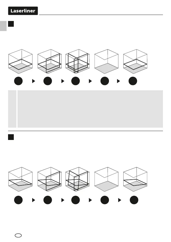 Die Laser mit der Wahltaste (7) auswählen. Jetzt können schiefe Ebenen bzw.