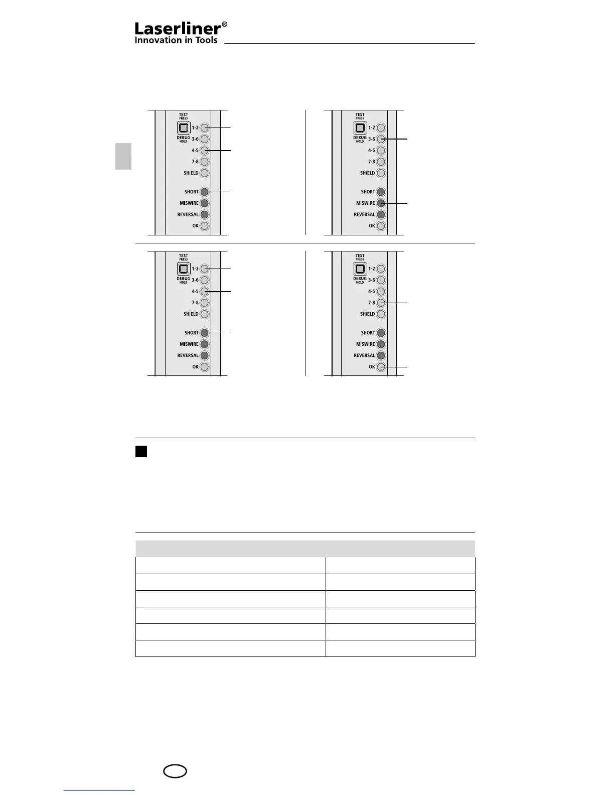 Hvis ingen LED lyser for et par, er der tale om en kabelafbrydelse.