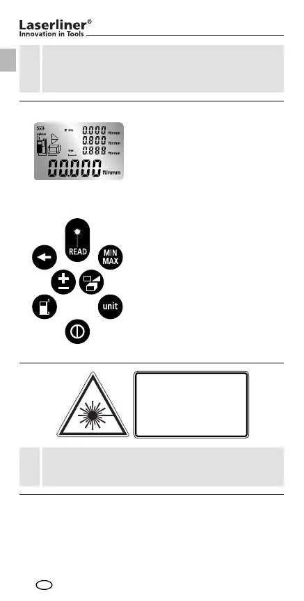 Nicht direkt in den Strahl sehen! Der Laser darf nicht in
