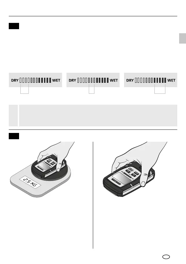 The LED display bar becomes larger, from left to right, with increasing moisture