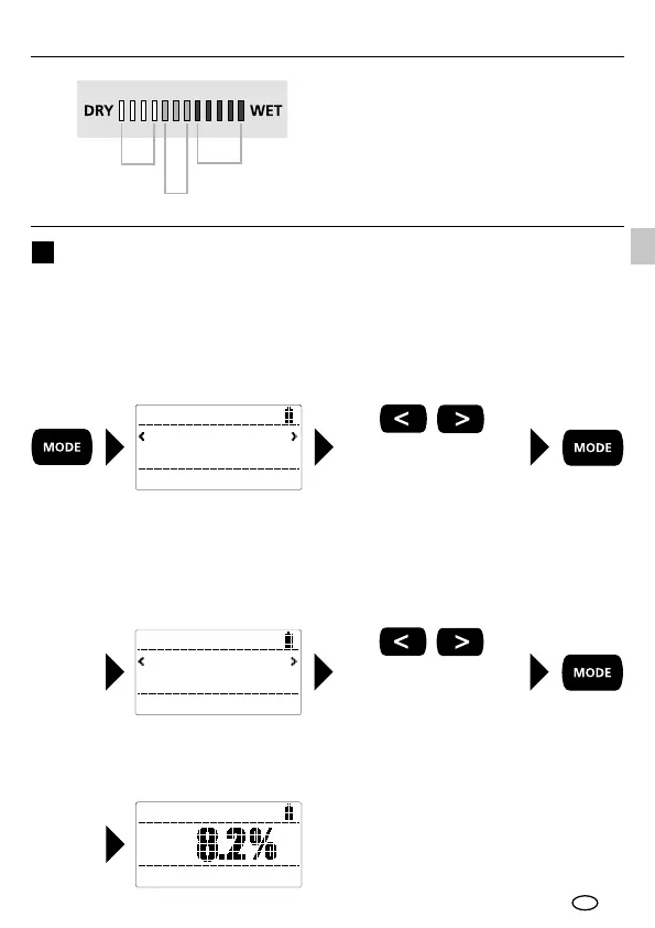 mesurée actuelle en % d’humidité du matériel s’afche au centre de l’écran.