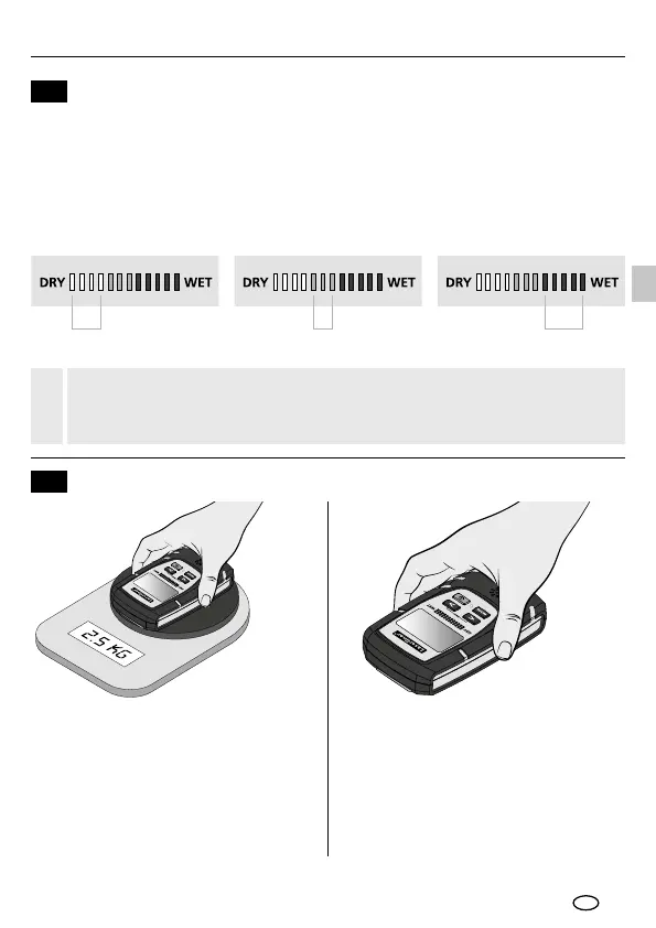 Además de la indicación numérica de la humedad relativa del material en %, los