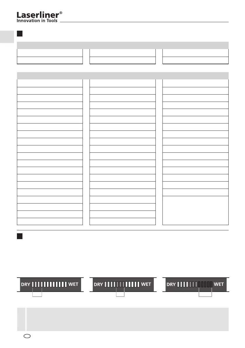 (feucht) und 5 rote (nass) Segmente. Bei nassem Material ertönt zusätzlich ein akustisches Signal.