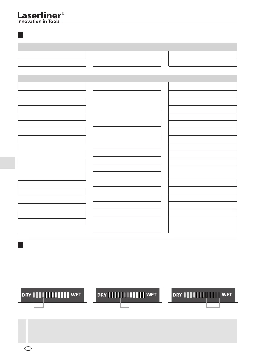 LED oferece uma avaliação da humidade adicional dependente do material. Com um teor de humida-