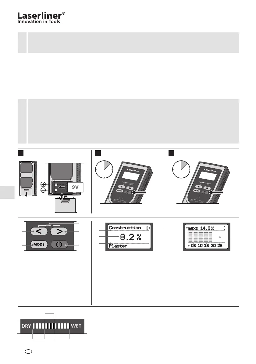 ledende gummikontakter på undersiden av apparatet måles den fuktavhengige dielektrisiteten til måleob-