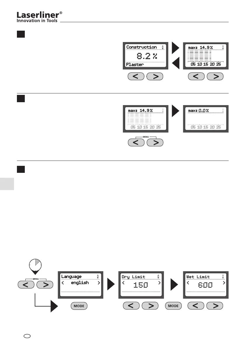 verdien for „tørr“ (Dry Limit). Trykk på tasten „MODE“ en gang til for å stille inn verdien for „våt“