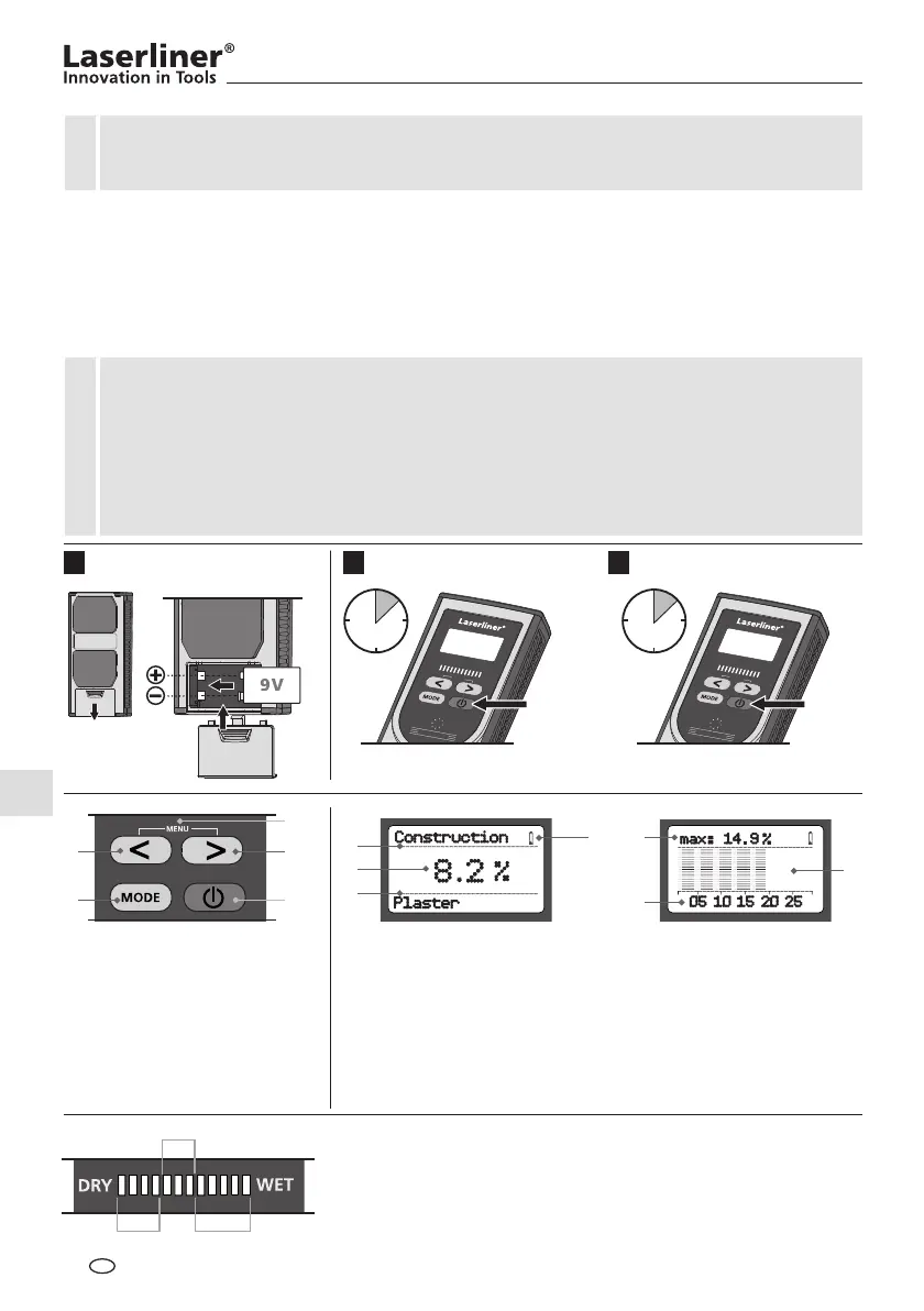 измеряется с помощью 2 контактов из электропроводящей резины с нижней стороны прибора, и влажность