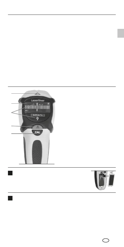 housing‘s rear side and insert a 9 V battery.