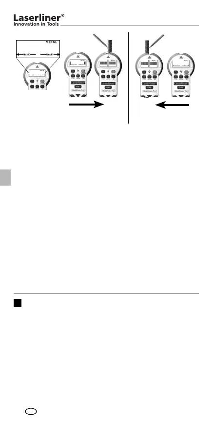 Heti kun suurin arvo näkyy, laite on metallin läheisyydessä.