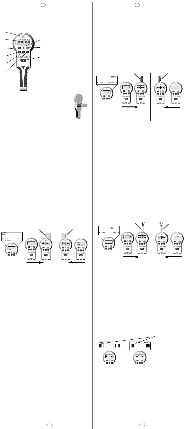 3. Select STUD-SCAN, METAL-SCAN or AC-SCAN (4,