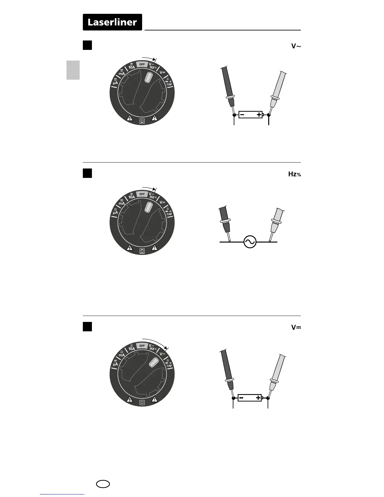 To measure the frequency turn the rotary switch to position "Hz" /