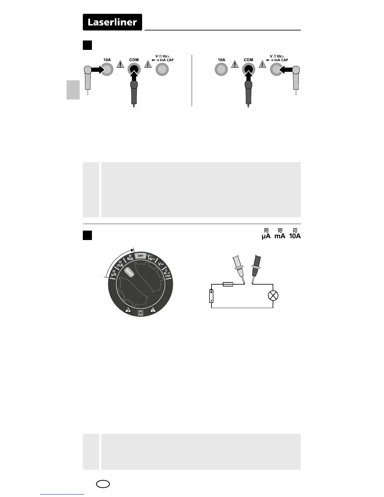 Zet de draaischakelaar voor de stroommeting op 'μA', 'mA' of '10 A'