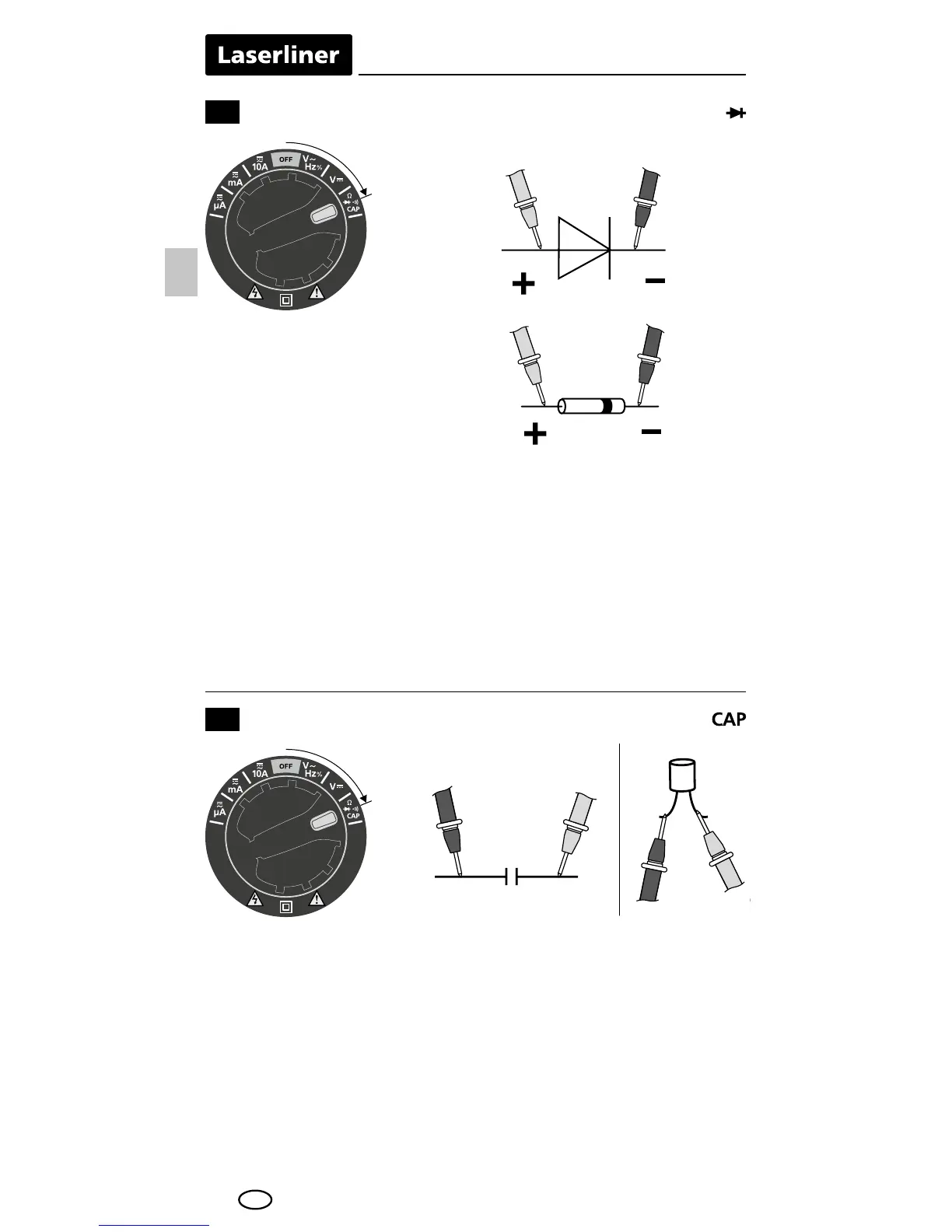to gange på knappen „Mode“ aktiveres funktionen „Diodetest“.