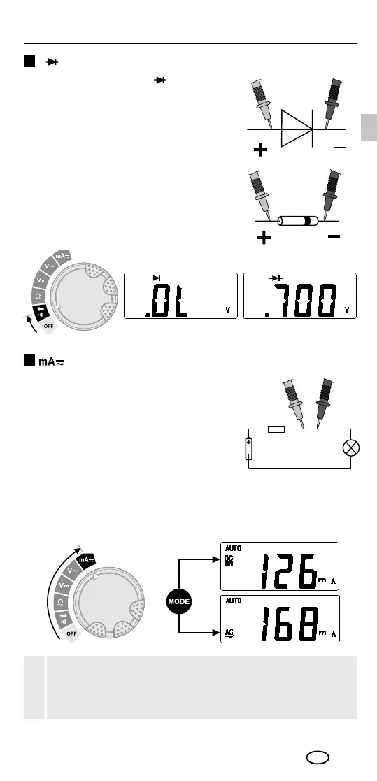 ‚mA‘ en druk op de toets ‚Mode‘ om de
