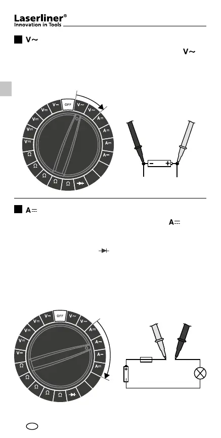 Til spændingsmåling indstiller man drejekontakten på pos. „ “