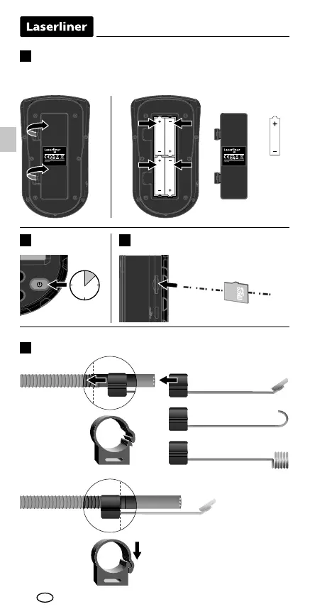 Åbn batterihuset og læg batterierne (4 x Type AA) i.