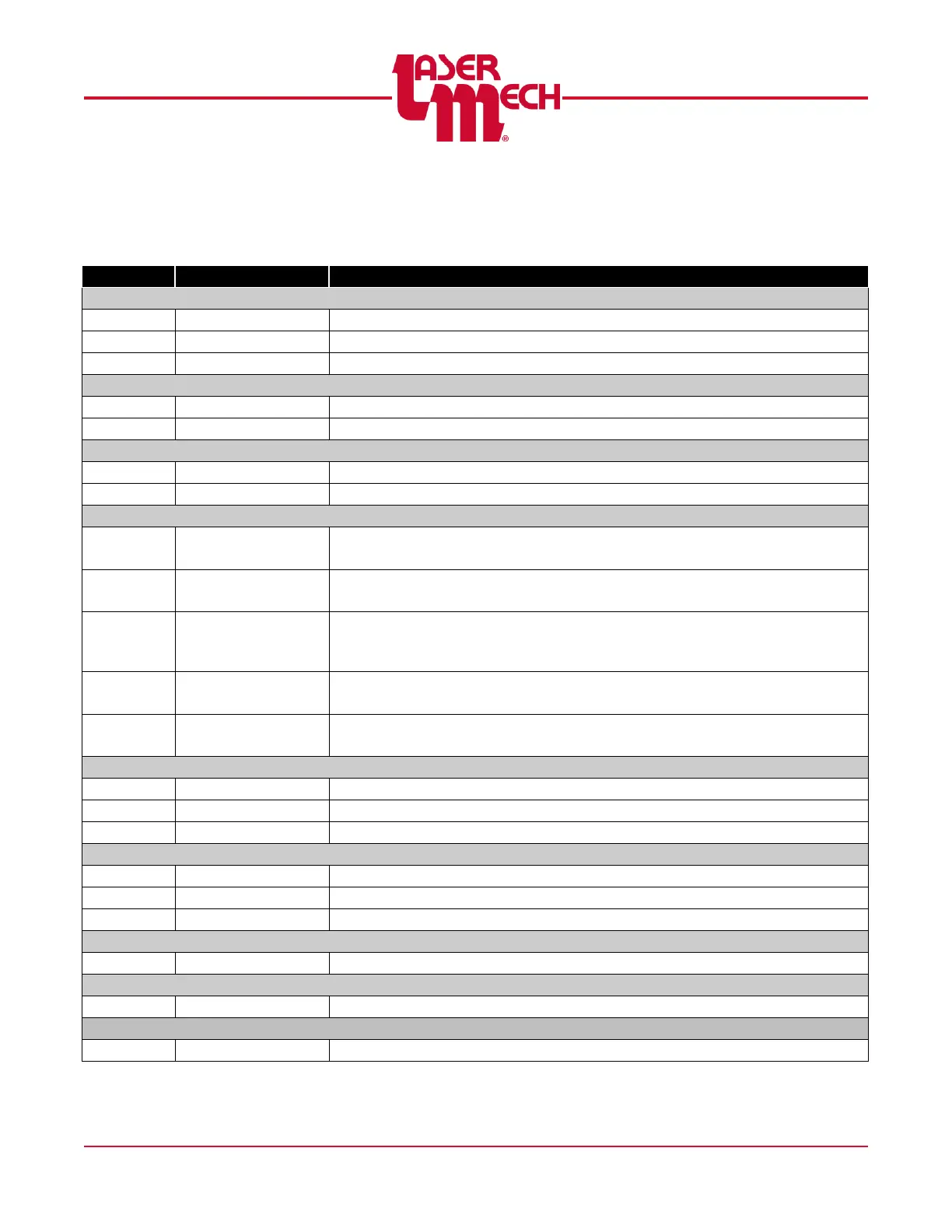 For recommended user-serviceable spare parts, please call Laser Mechanisms at (248) 474-9480. If your