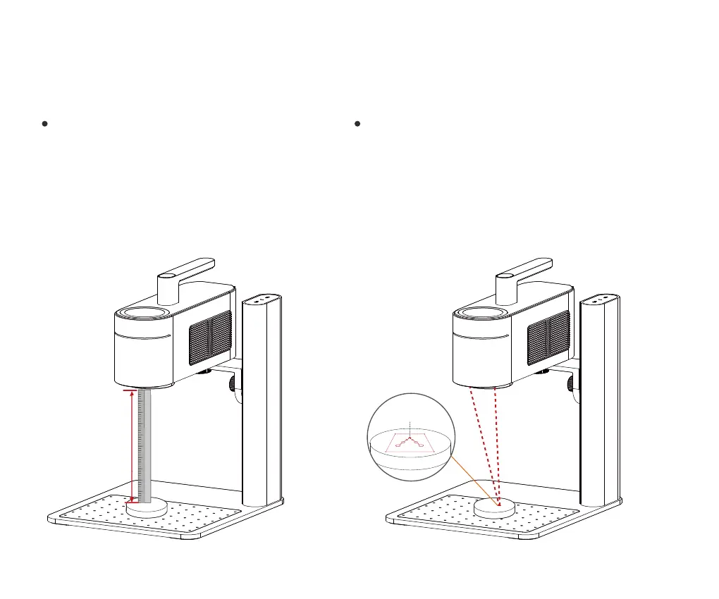 Ajuste la altura del soporte, cuando los dos puntos láser