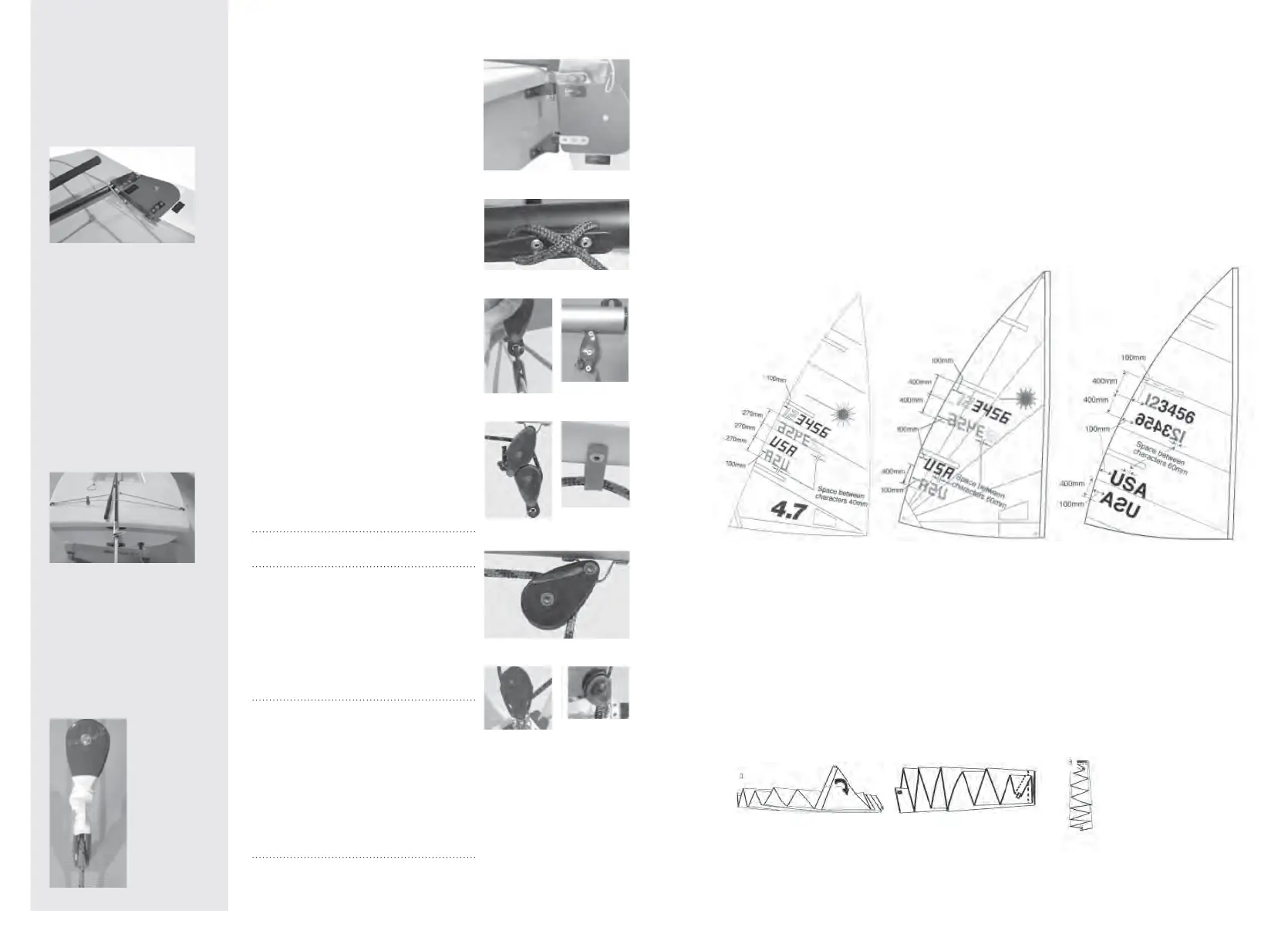 Flaking or rolling your sail is highly recommended. Crumpling a sail will crack the fi nish of the