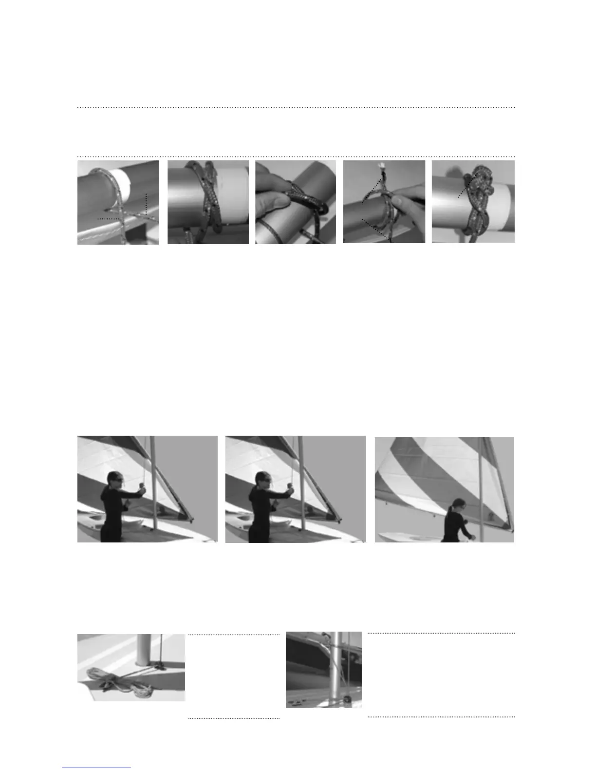 upward). e tape helps keep the halyard from slipping up to the next sail ring or sail tie.