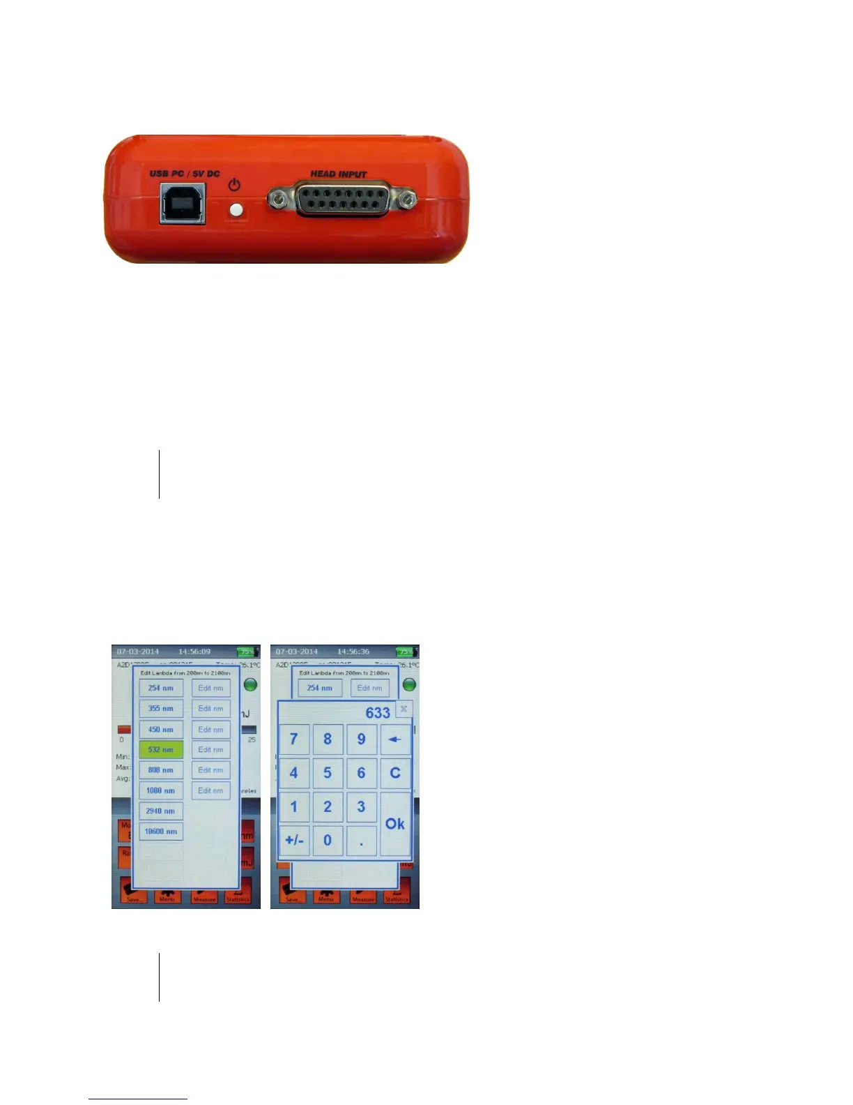 The wavelengths available, and the editable wavelength range depend on the Sensor head