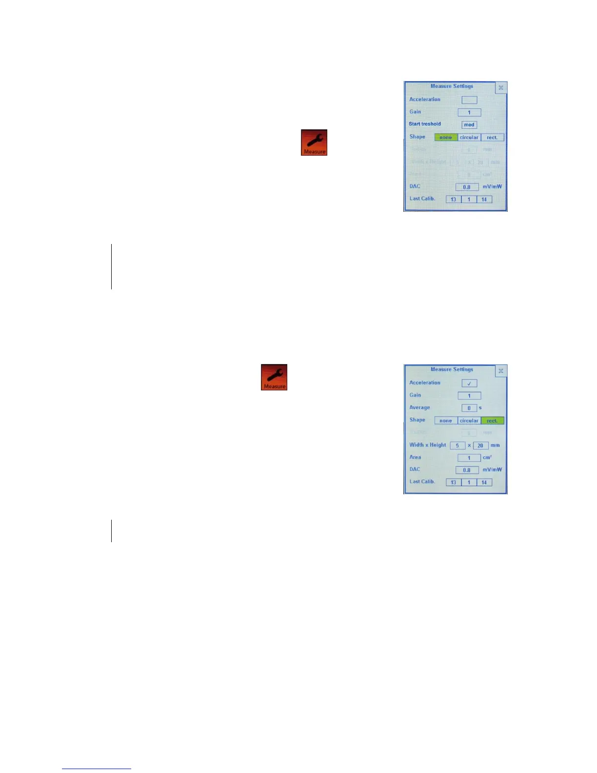 a) Touch the button “Measure” to open “Measure