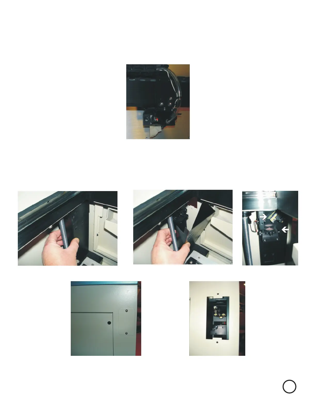 Lower table all the way down. Remove the 3 thumb screws and tip box cover to the right and remove.