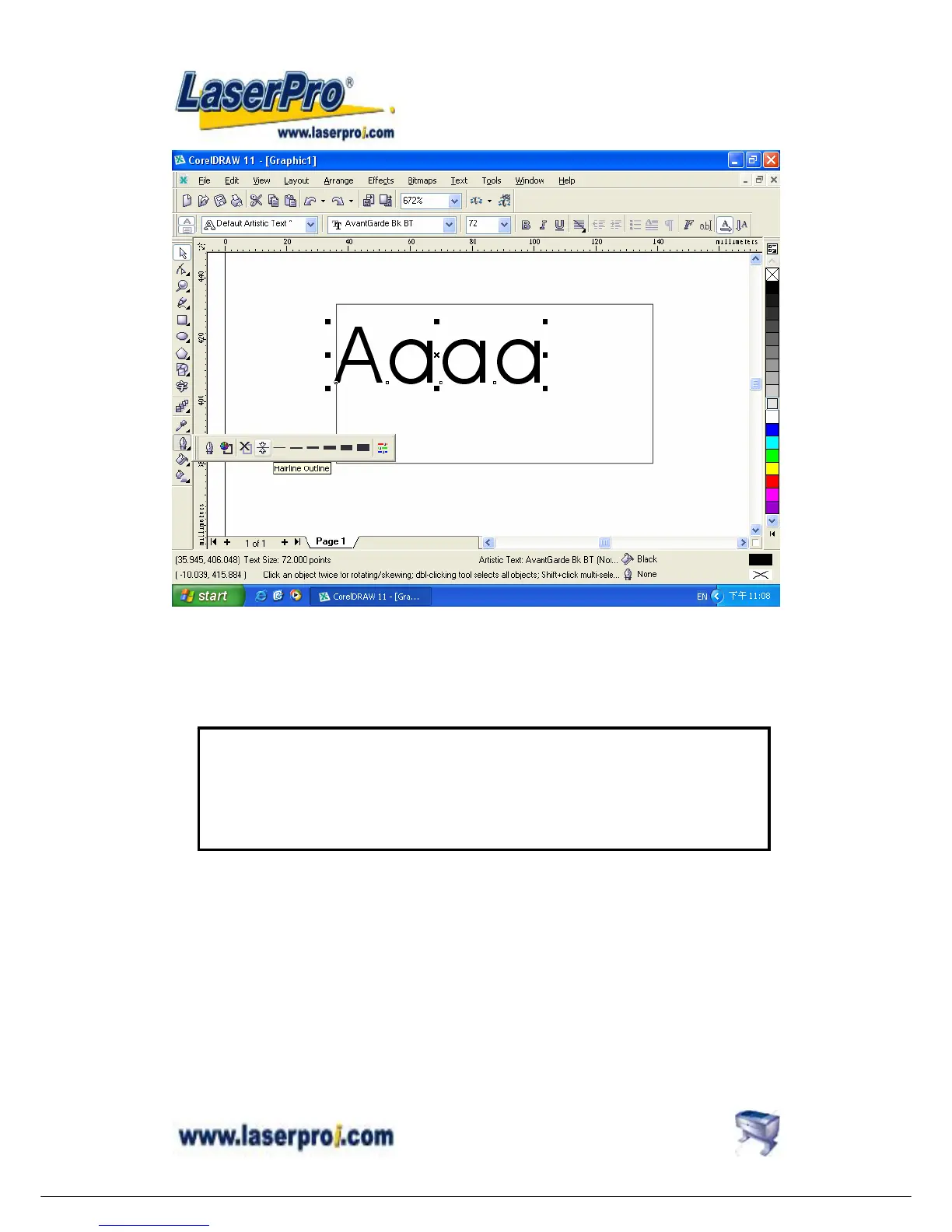 3. Change the text’s outline color by right clicking on the desired color on CorelDraw