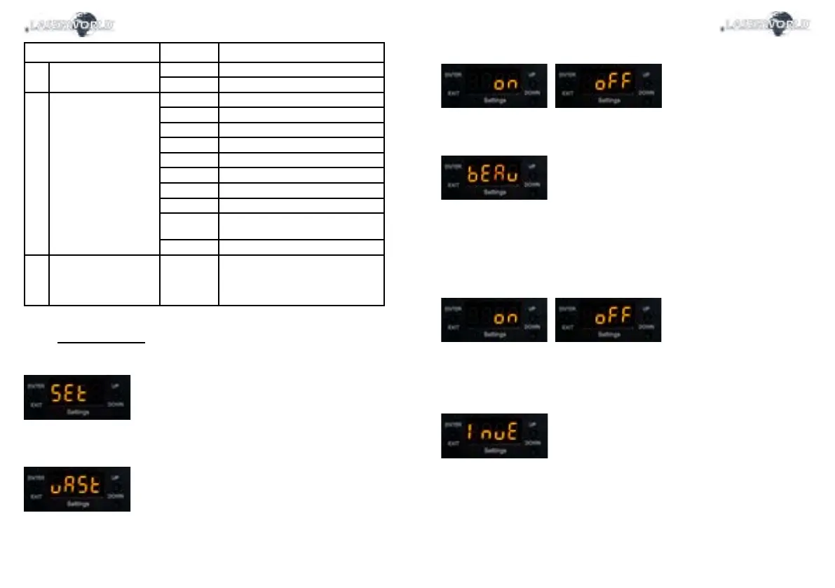 Le menu „bEAu“ permet d‘activer et de désactiver la sécurité de balayage. La sécurité „beam