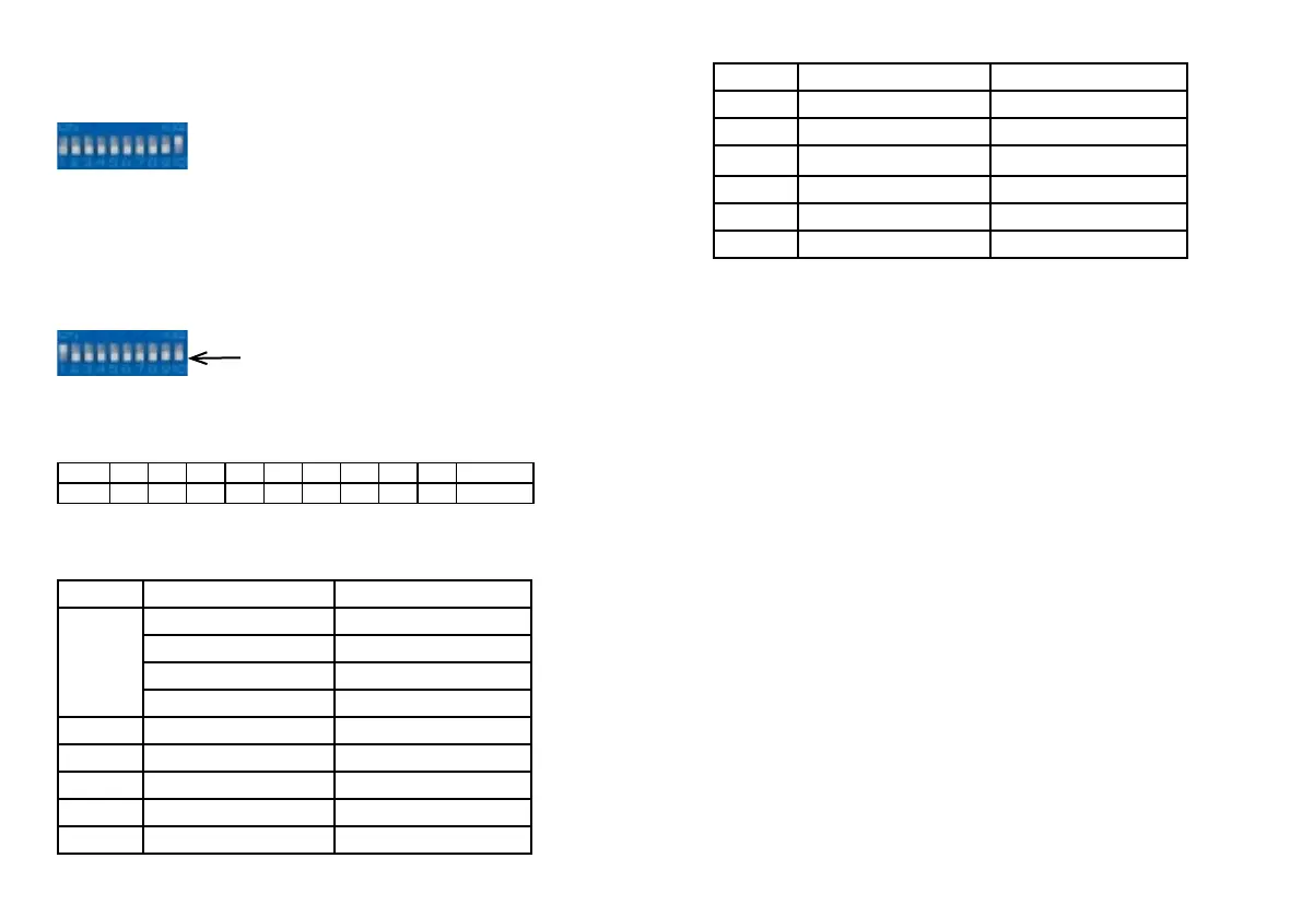 Switch 10 must be set to „o“, the other switches are used for setting the DMX