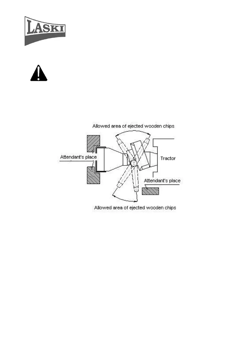 - When loading materials and during operation of the chipper the attendant