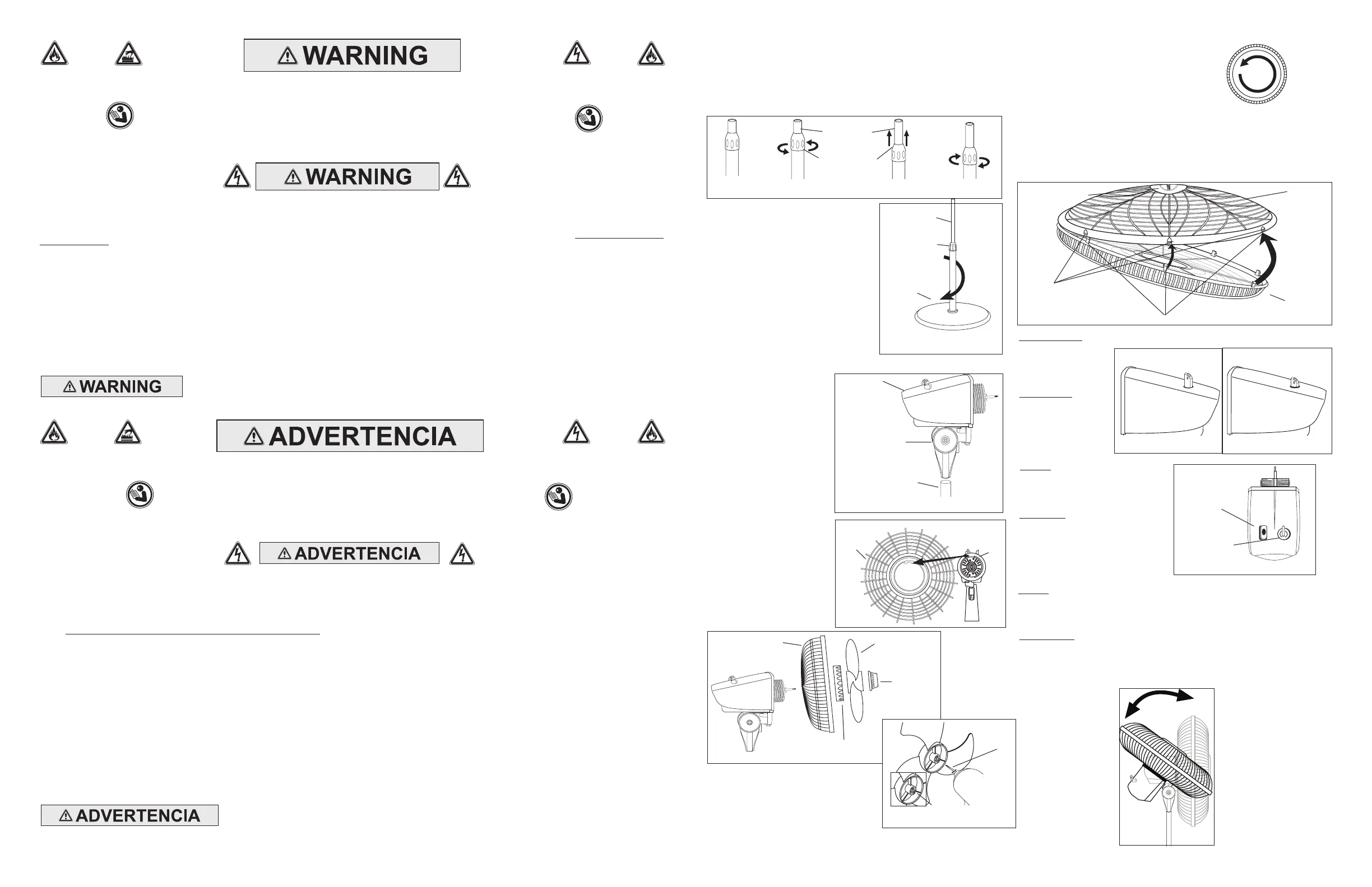8. Arme el Ventilador completamente, siguiendo las instrucciones, antes de conectarlo a la fuente de alimentación eléctrica.