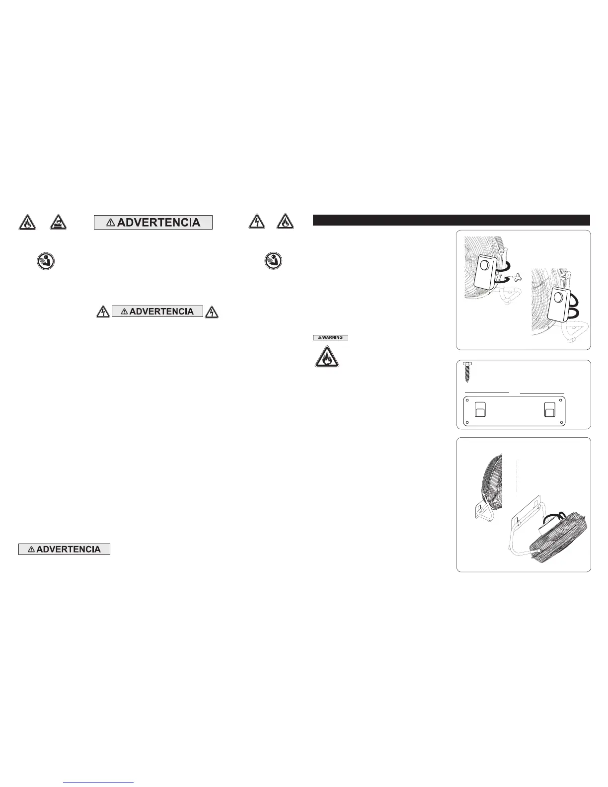 causar un choque eléctrico o incendio, o dañar el Ventilador. Para reducir el riesgo de incendio, NO bloquee ni altere el Ventilador de