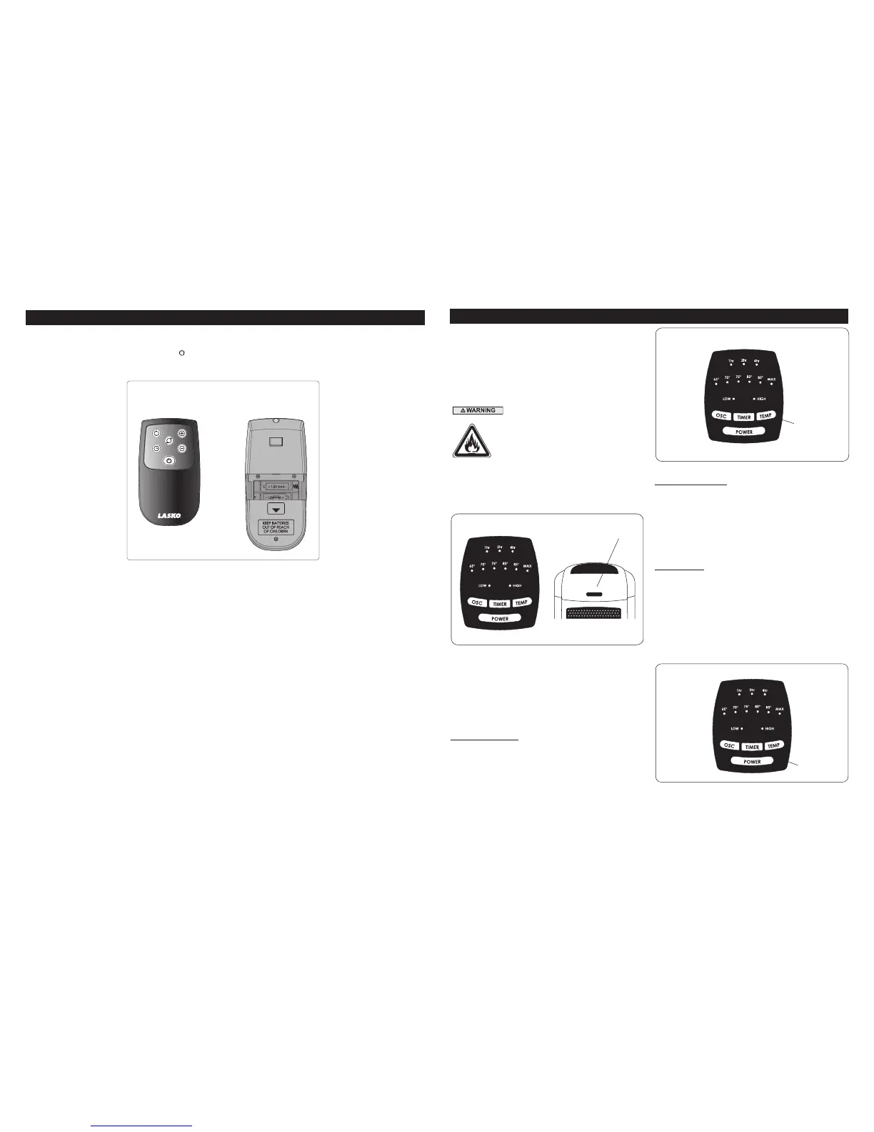 Todas las funciones realizadas con el Control Remoto operan del mismo modo que los controles manuales, menos la vuelta de la Calefactor