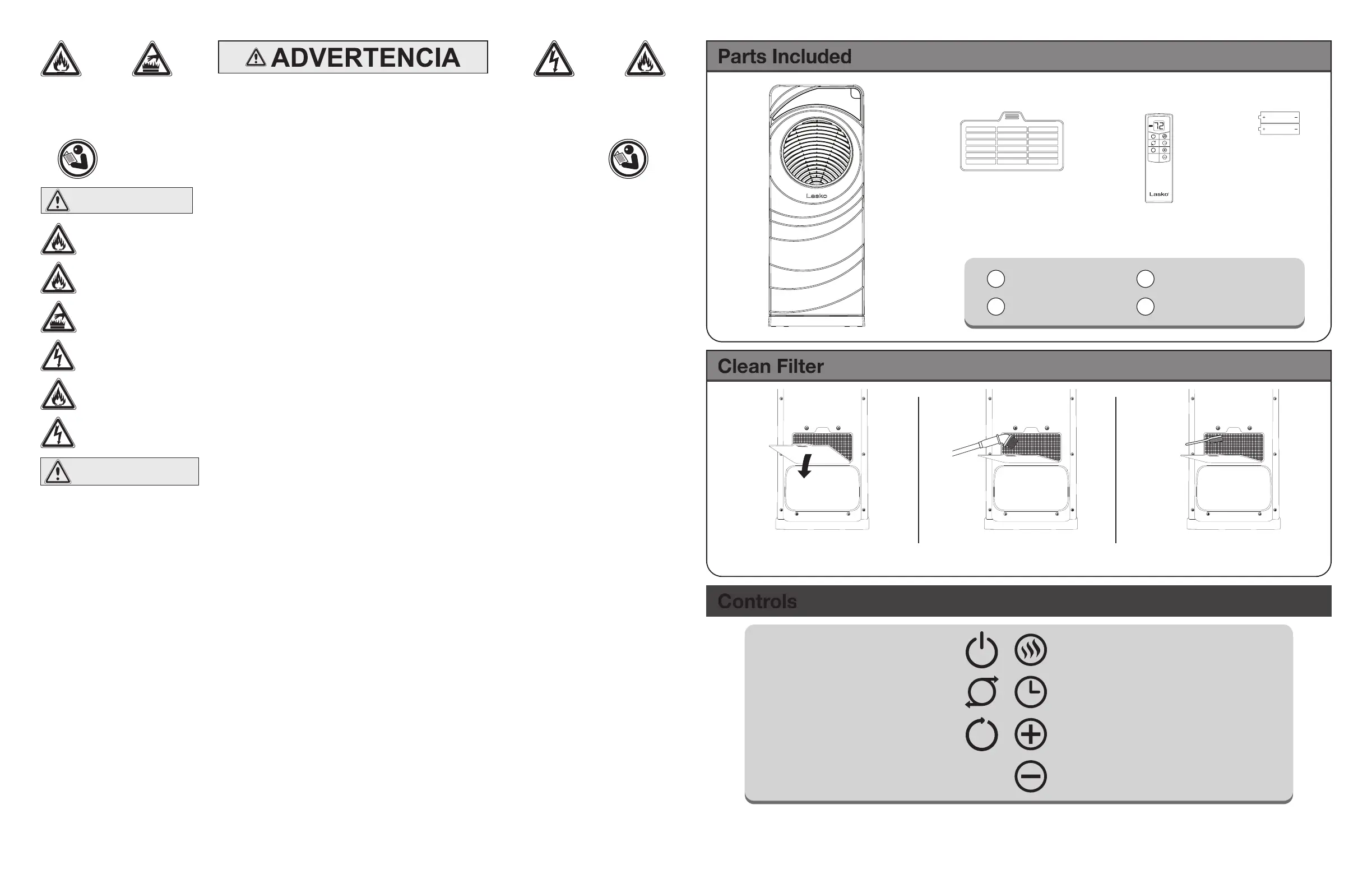 eléctrica o incendio, o dañar el Calefactor. No bloquee ni intente forzar el Calefactor en alguna manera mientras que está en funcionamiento.