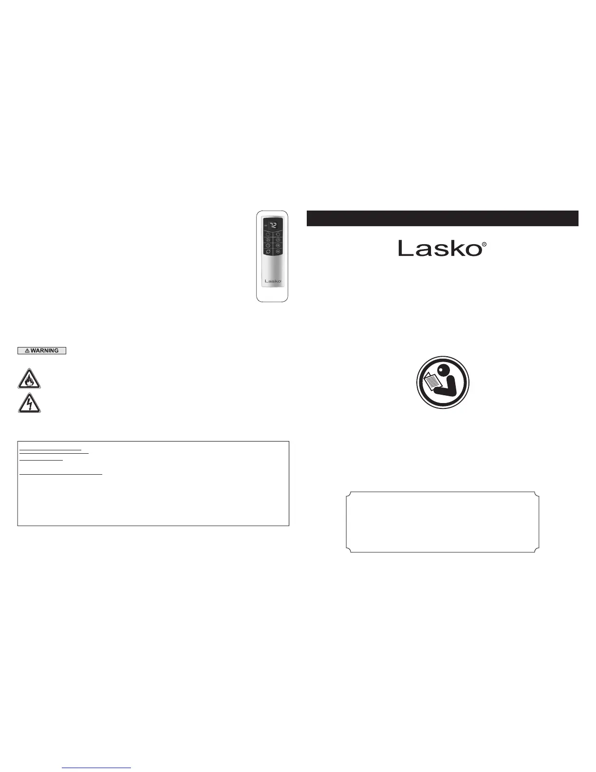 purchase within the warranty period. Contact the Lasko customer service department to obtain a Return Authorization (“RA”). DO NOT return products