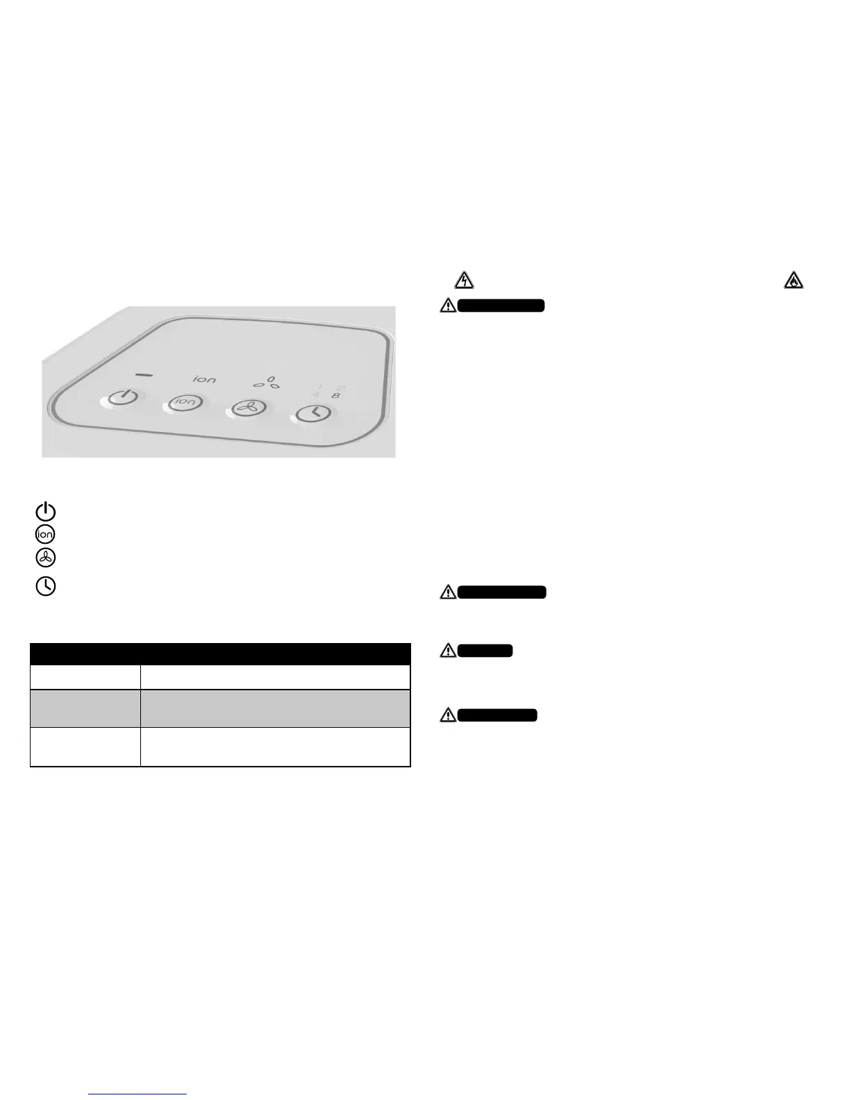 Ion: Press Button to engage the Negative Ion Generator.