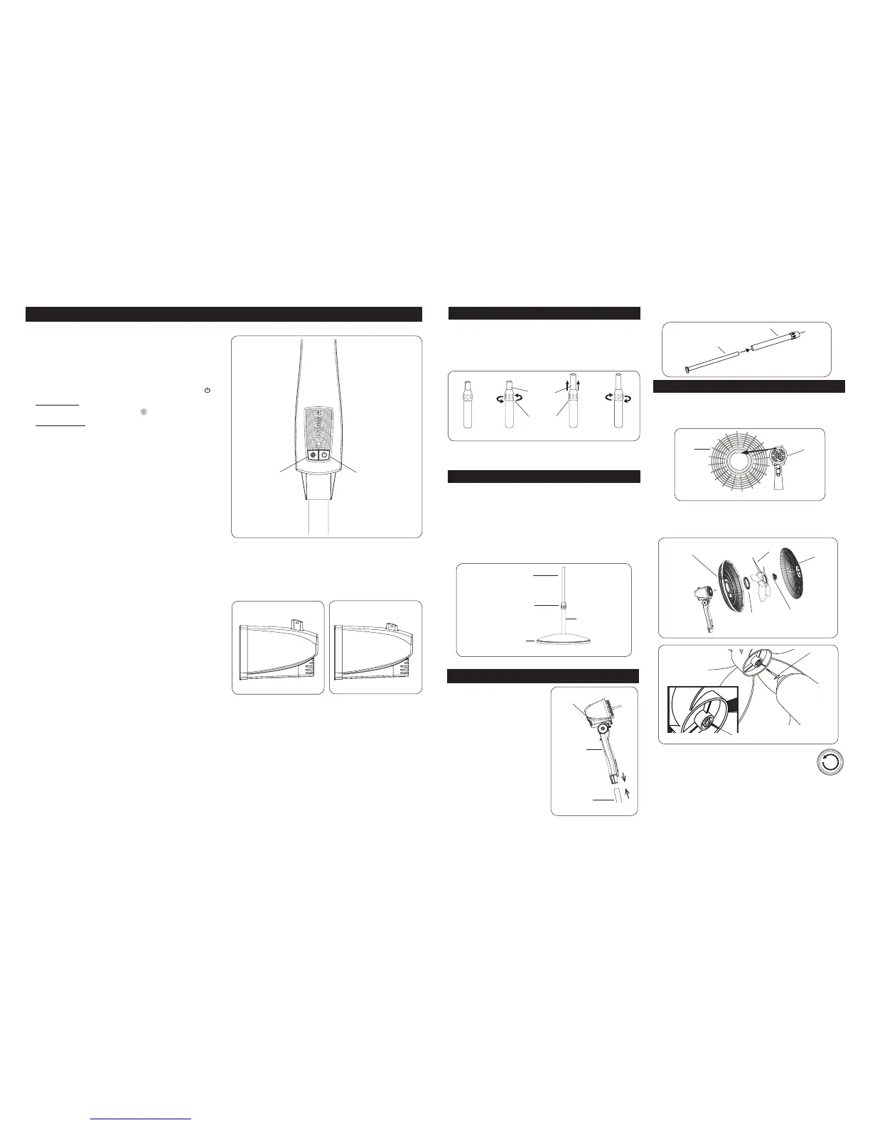 4. OSCILLATION: Push down oscillation knob on motor