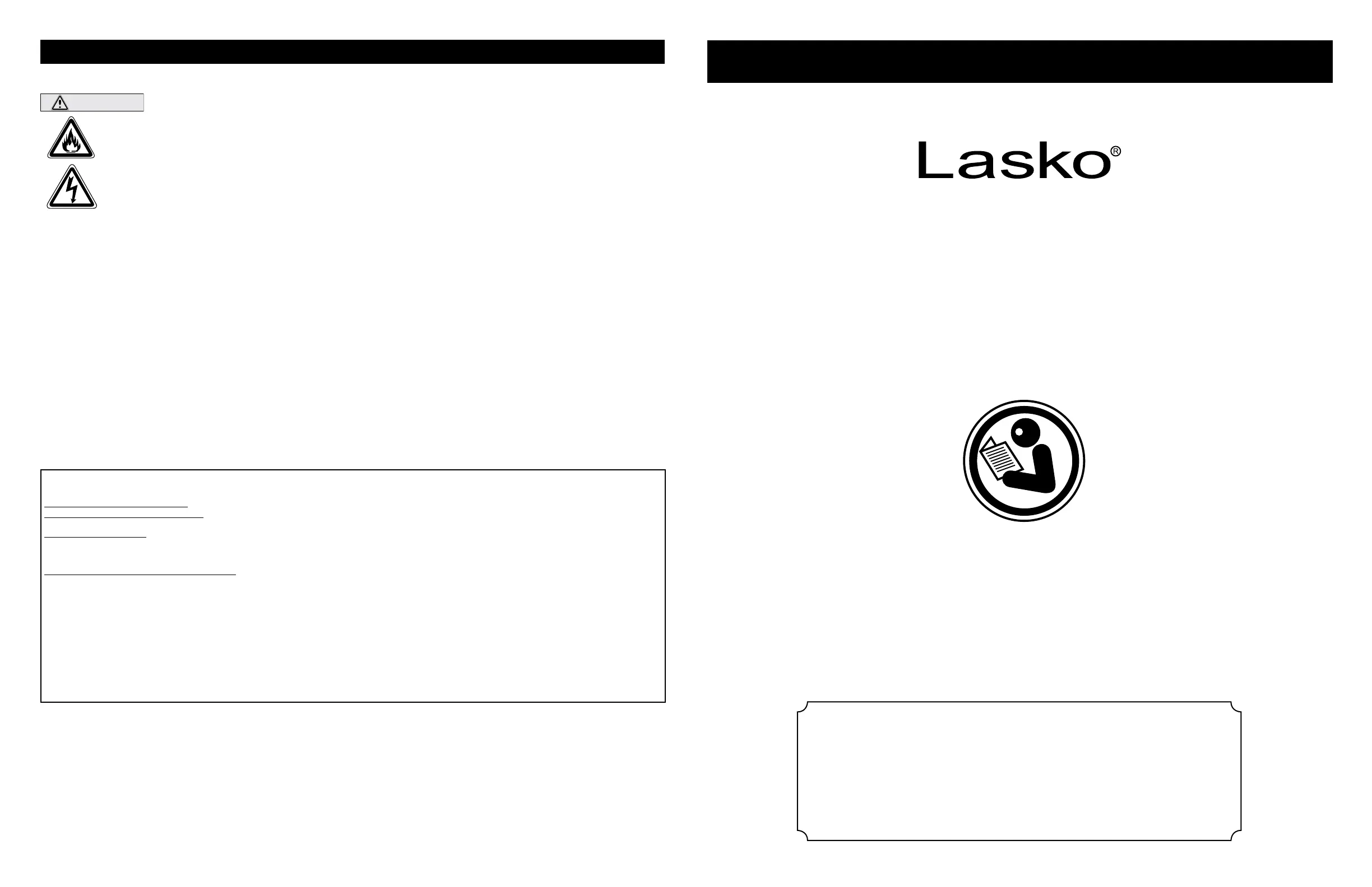 customer expense with proof of purchase within the warranty period. Contact the Lasko customer service department to obtain a Return Authorization