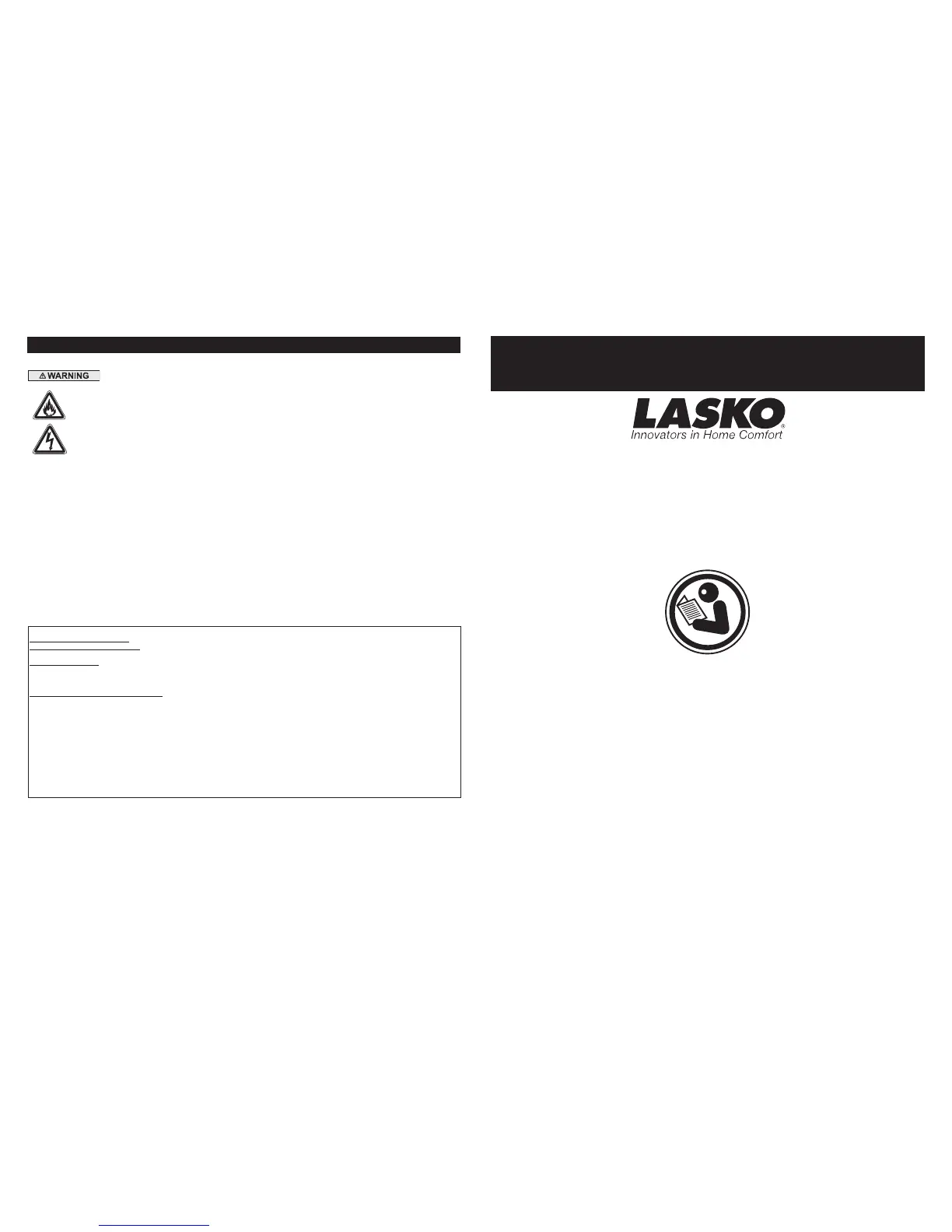 LASKO PRODUCTS, INC. LIMITED WARRANTY (VALID IN THE USA, ITS TERRITORIES, AND CANADA ONLY)