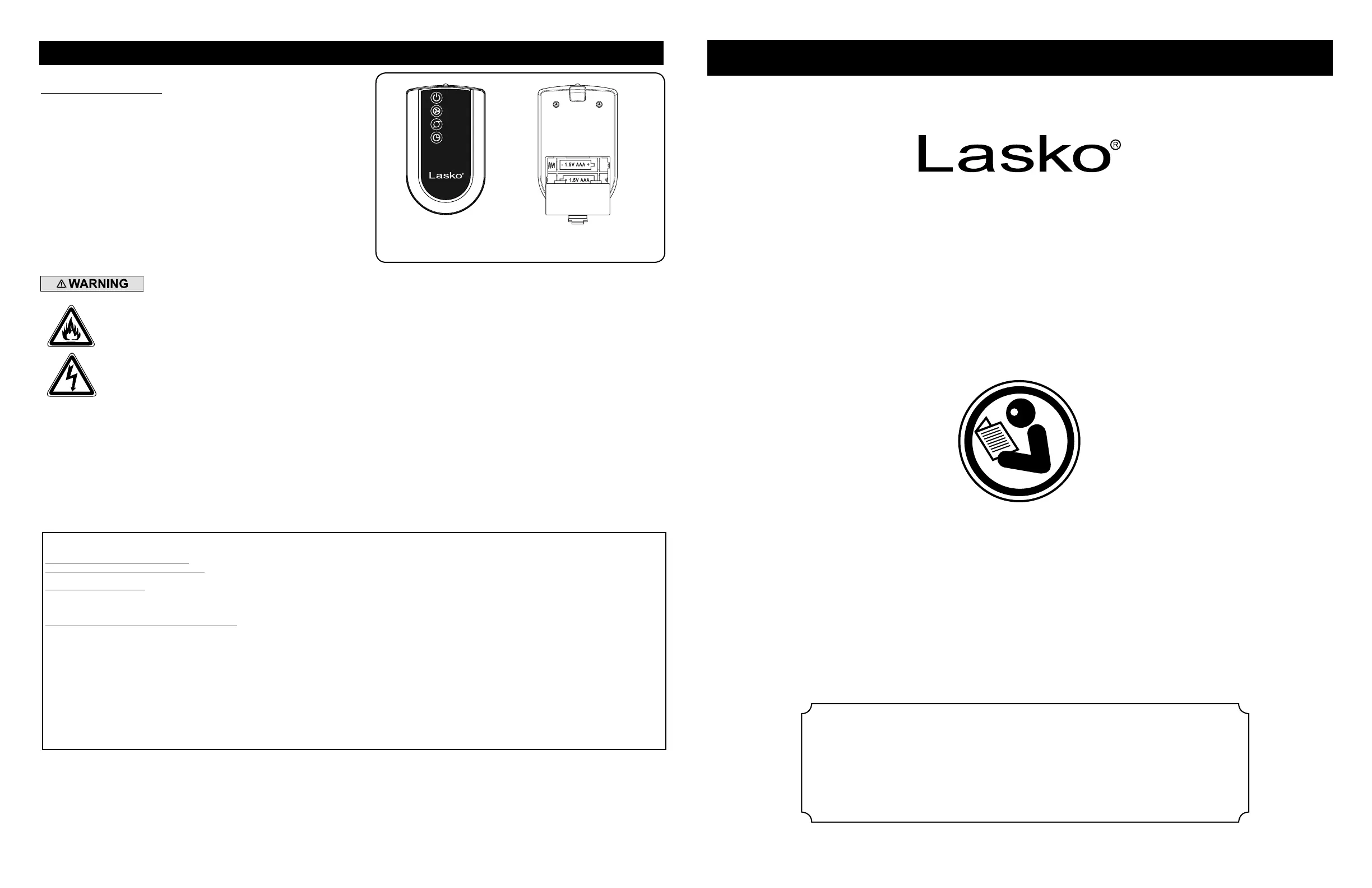 purchase within the warranty period. Contact the Lasko customer service department to obtain a Return Authorization (“RA”). DO NOT return products
