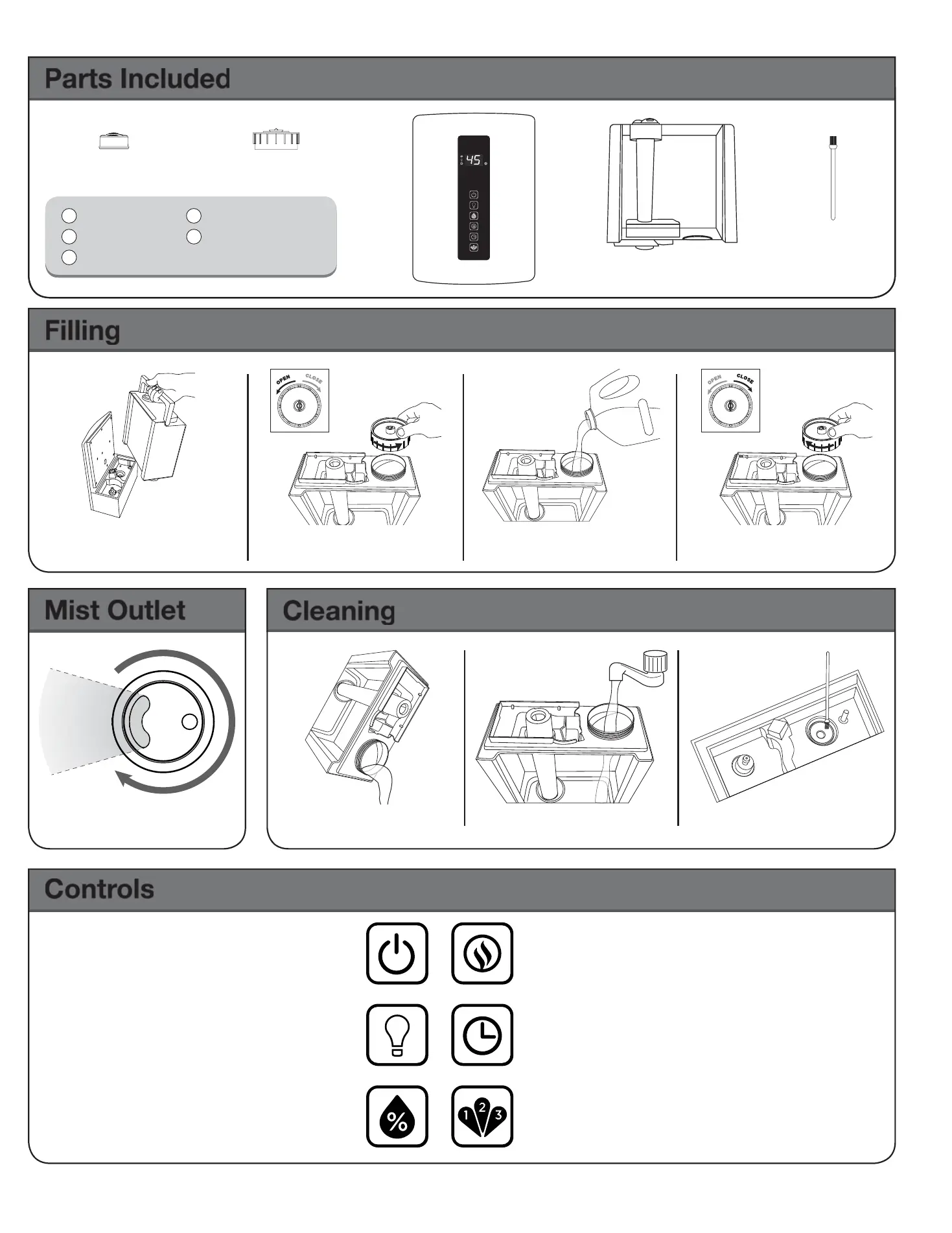 APAGADO (ON/OFF) como el único medio para desconectar de la electricidad. NUNCA deje a los niños sin supervisión cuando el Humidificador esté