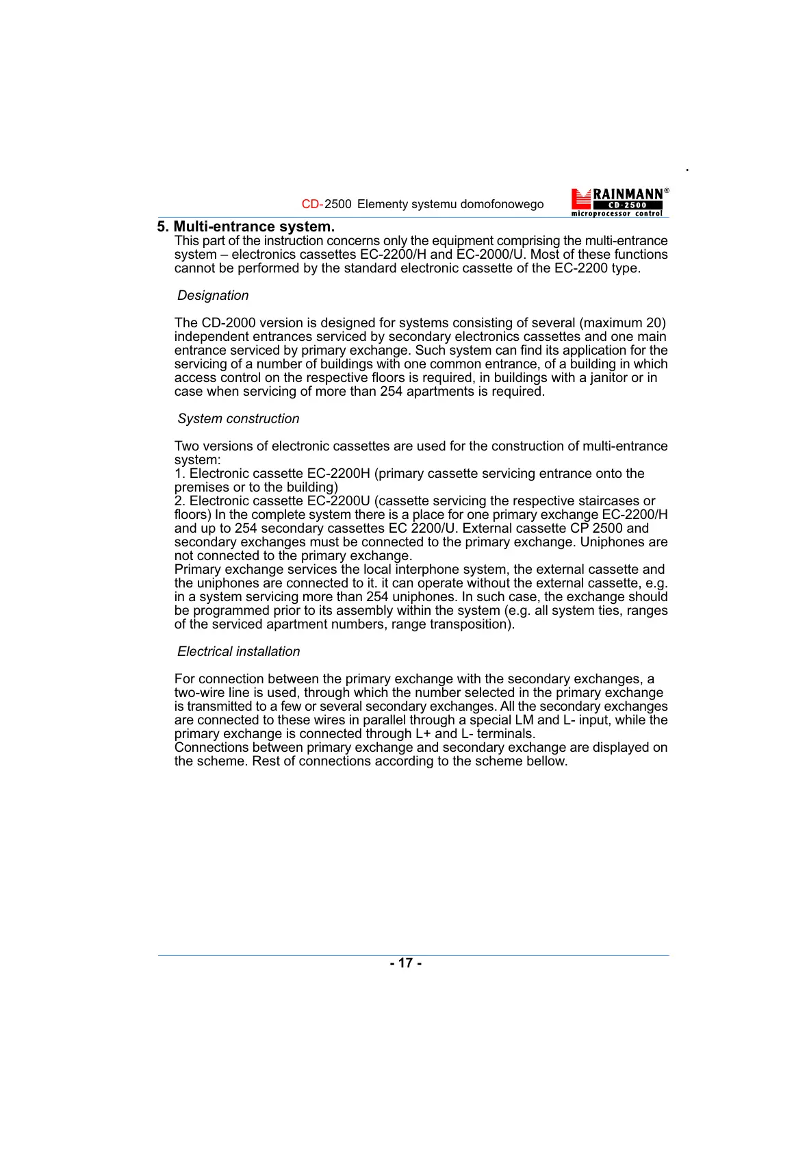 floors) In the complete system there is a place for one primary exchange EC-2200/H