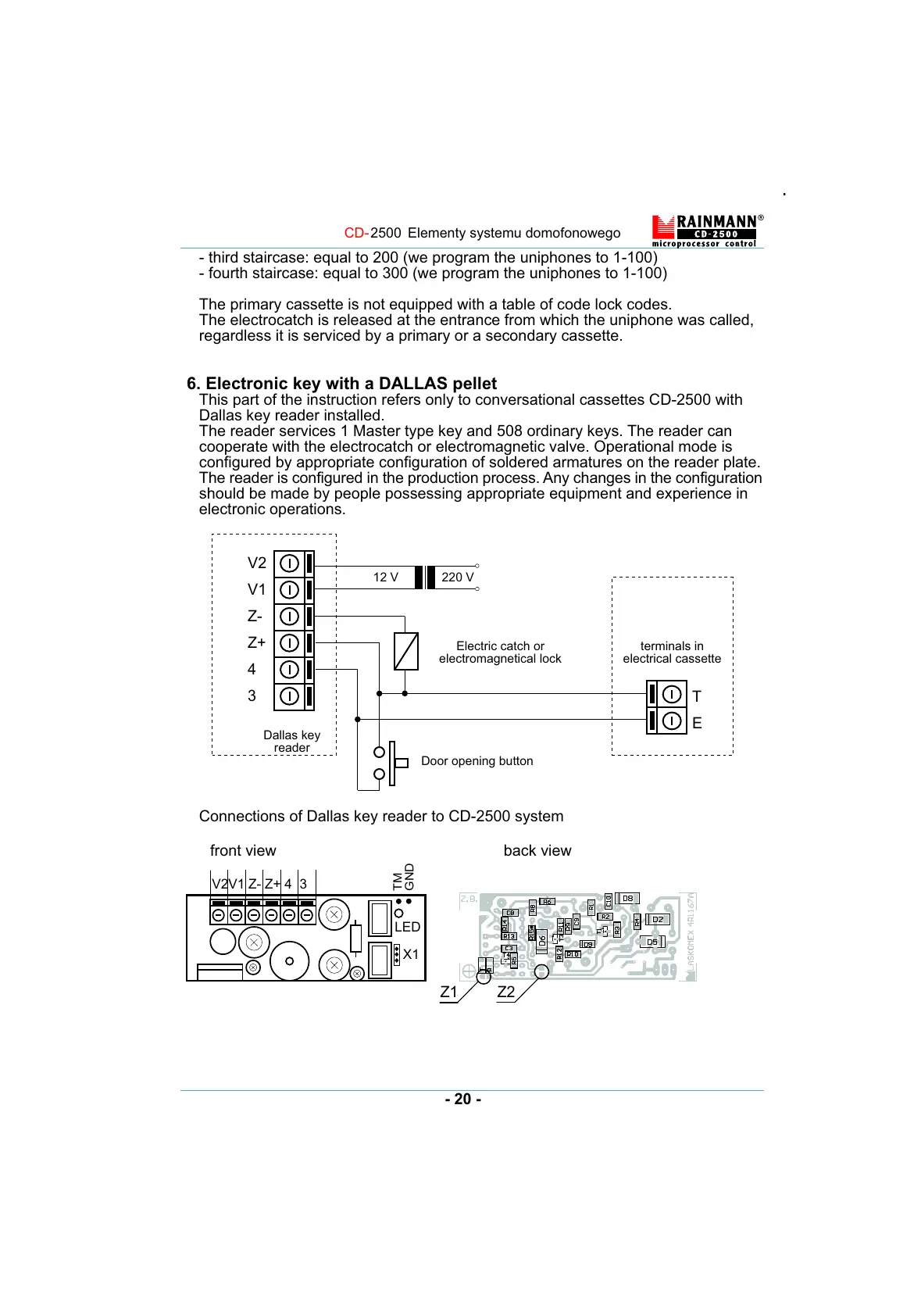 Connections of Dallas key reader to CD-2500 system
