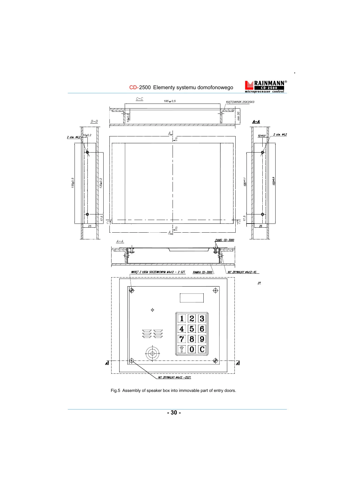 Fig.5 Assembly of speaker box into immovable part of entry doors.