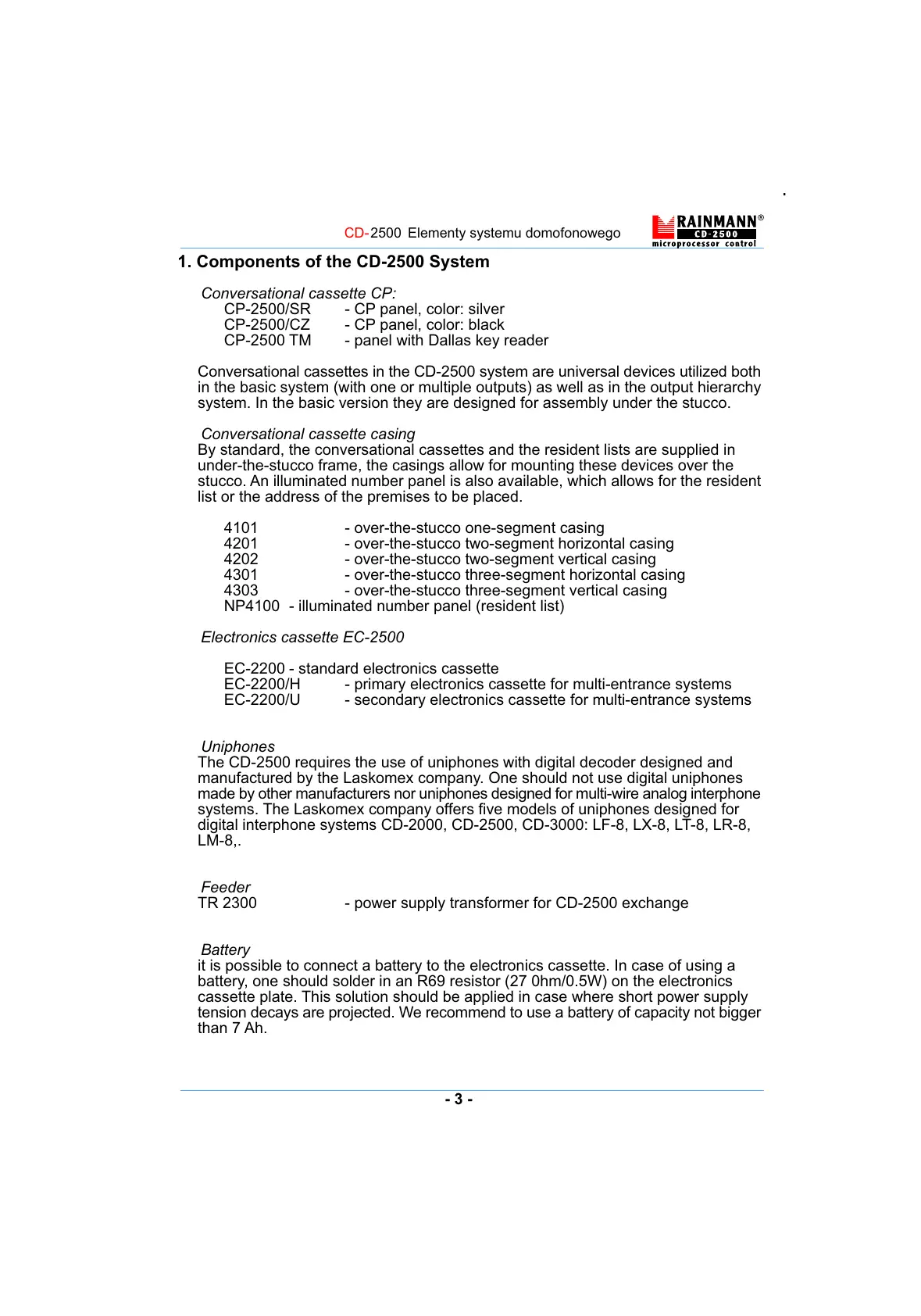 digital interphone systems CD-2000, CD-2500, CD-3000: LF-8, LX-8, LT-8, LR-8,