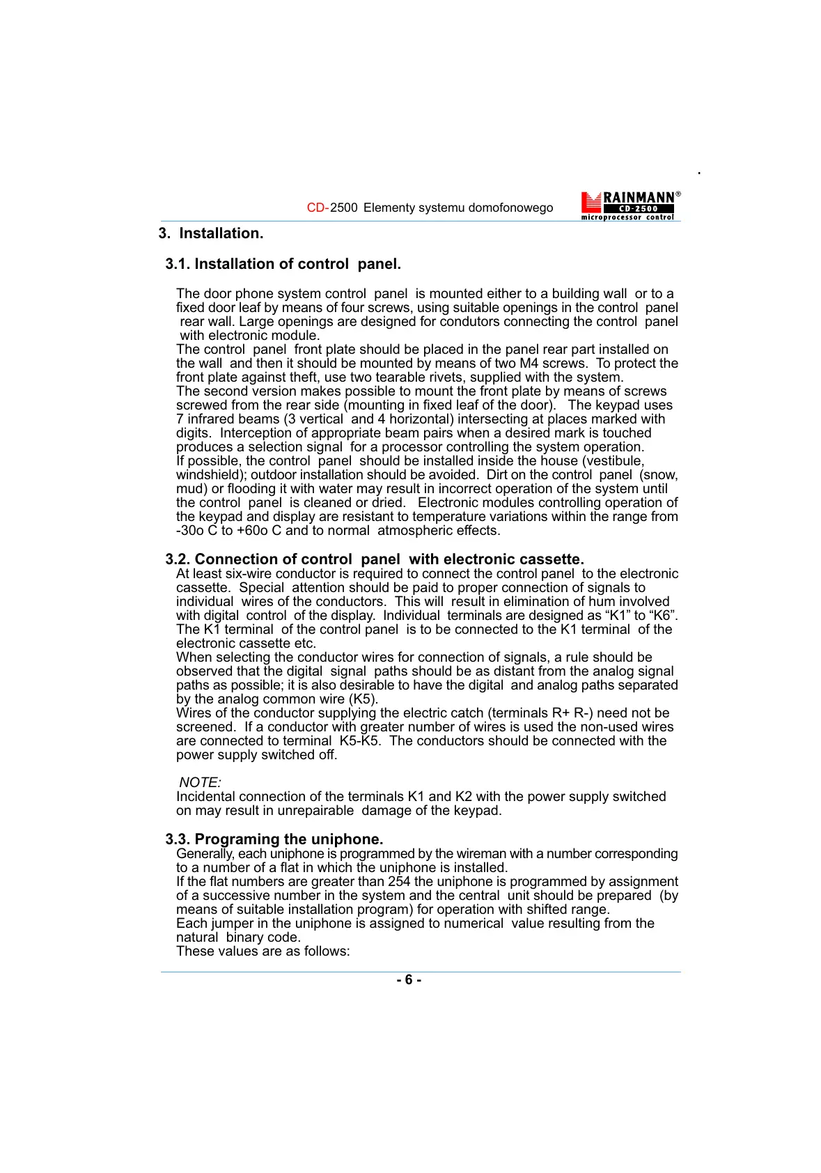 If the flat numbers are greater than 254 the uniphone is programmed by assignment