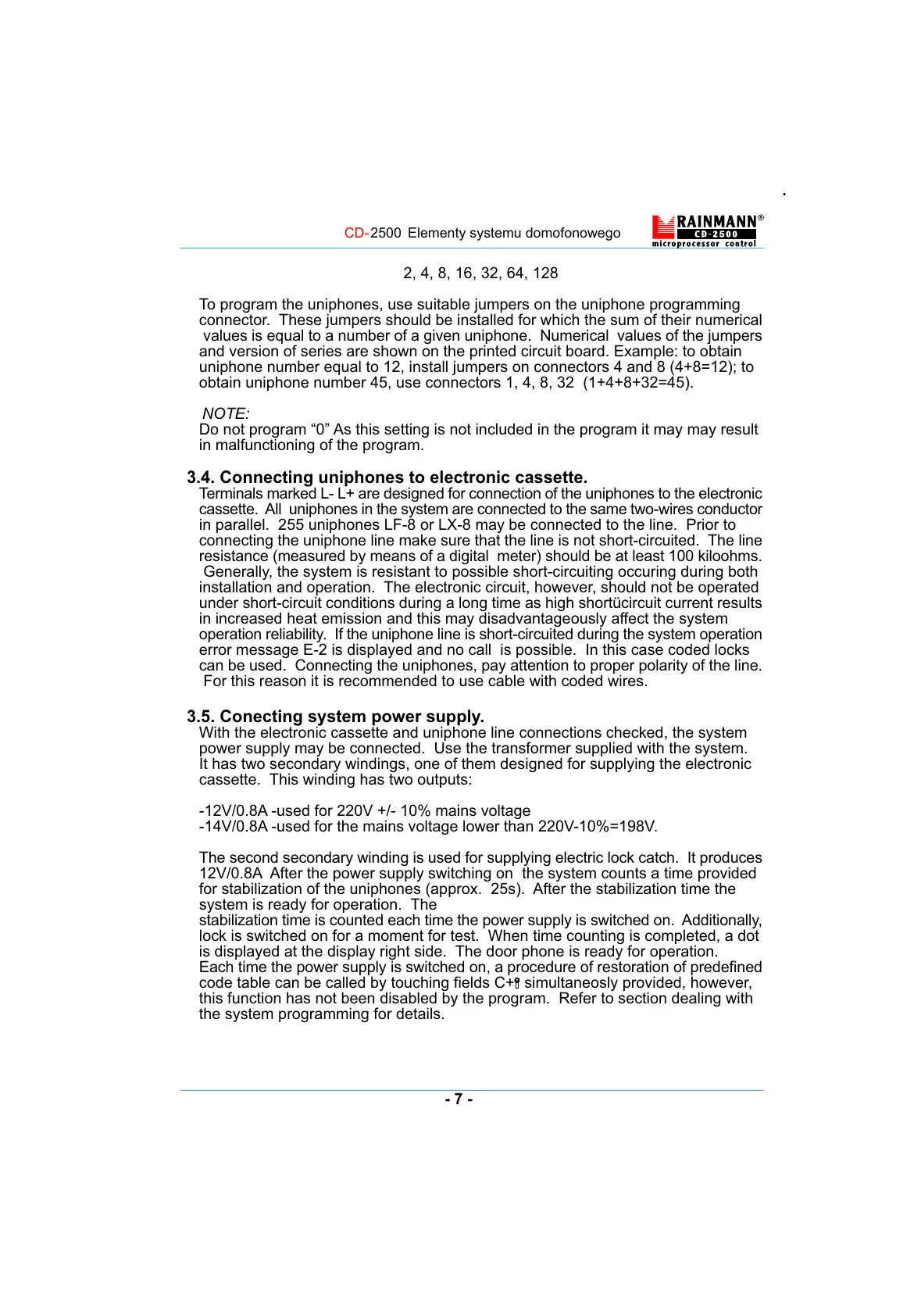 To program the uniphones, use suitable jumpers on the uniphone programming