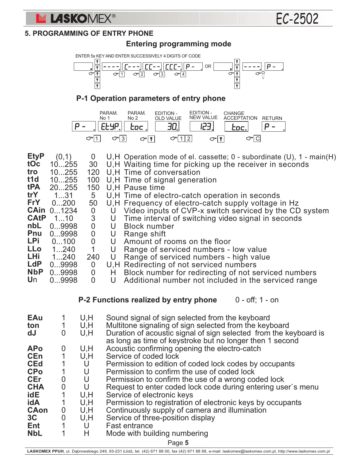 5. PROGRAMMING OF ENTRY PHONE